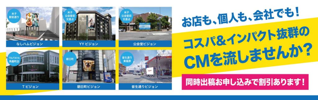 | 2つのビジョンに同時出稿 | 放映料の合計より10%OFF |