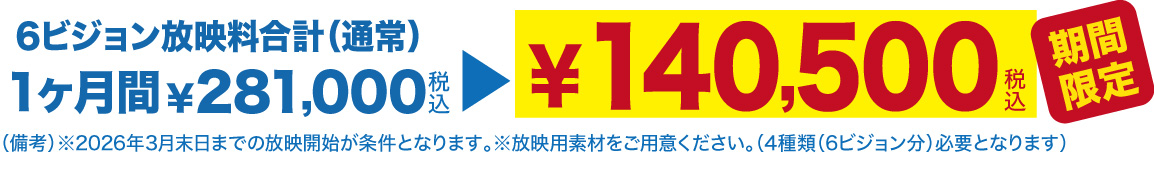 ▼お問い合わせ種別 6ビジョン放映料半額キャンペーン仮お申し込み(本申込ではありません)お問い合わせ・ご質問